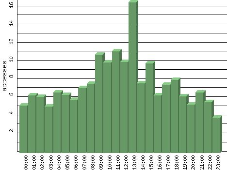 | Hour | Accesses | % | Bytes | % | Visits | % | Bits per Sec | Bytes per Sec |