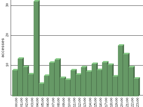 | Hour | Accesses | % | Bytes | % | Visits | % | Bits per Sec | Bytes per Sec |