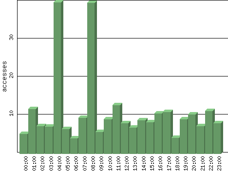 | Hour | Accesses | % | Bytes | % | Visits | % | Bits per Sec | Bytes per Sec |