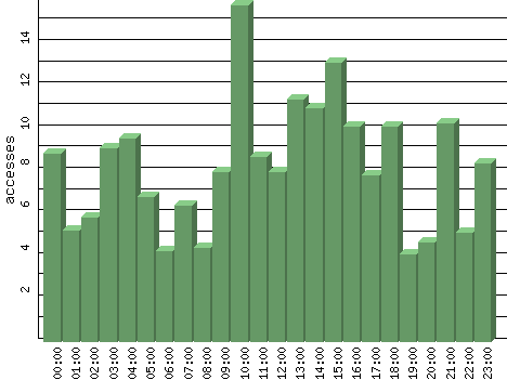 | Hour | Accesses | % | Bytes | % | Visits | % | Bits per Sec | Bytes per Sec |