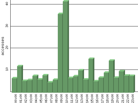 | Hour | Accesses | % | Bytes | % | Visits | % | Bits per Sec | Bytes per Sec |