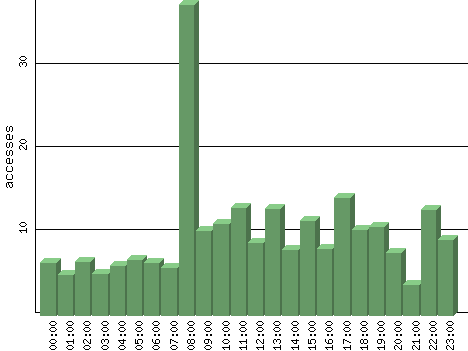 | Hour | Accesses | % | Bytes | % | Visits | % | Bits per Sec | Bytes per Sec |